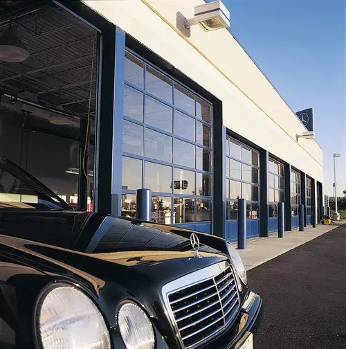 A full view glass garage door can add a unique touch to any commercial property. The glass doors are designed to let varied degrees of light in, while maintaining temperature and appearance.